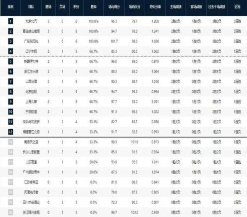 CBA聯(lián)賽已經(jīng)打完了第三輪,有的球隊(duì)的表現(xiàn)非常不錯,取得了三戰(zhàn)全勝的戰(zhàn)績,比如北京男籃、青島男籃和廣東男籃;有的球隊(duì)的表現(xiàn)超乎了球迷預(yù)期,比如陣容弱化明顯的遼寧男籃,以及前幾個(gè)賽季的弱旅寧波男籃;還有的球隊(duì)的表現(xiàn)比較糟糕,比如一直都是CBA勁旅的浙江男籃。打完三輪比賽后,積分榜的情況也出現(xiàn)了不小的變化,接下來詳細(xì)看一下。